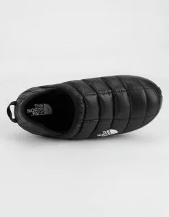 The North Face Thermoball Traction Slippers. Pry yourself out of those ski boots and pull on extremely warm, durable and water-resistant mules with tough high-traction soles. Insulated, fleece-lined slip-ons. Lightweight ThermoBall™ powered by PrimaLoft® insulation retains warmth when wet. Durable, water-resistant, 100% recycled P.E.T. ripstop upper. Cozy, Oso-fleece lining. Collapsible heel with elastic side gore panels for easy on/off. 40% recycled-rubber sole for supreme traction. Imported.