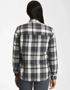 The North Face Campshire Shirt. The Women’s Campshire Shirt has a 100%-organic cotton body fabric and 100%-recycled fleece liner. Also insulated on the sleeves with Heatseeker™ Eco, this is a classically styled shirt, with a whole lotta warmth and sustainability cred. Standard fit. Lined with Sherpa fleece for extra warmth. Heatseeker™ Eco insulation for warmth even in wet weather. Center front snap placket. Two patch chest pockets with snap-flap closure. On-seam, side-entry hand pockets. Woven heritage logo patch on left hem. 100% Cotton. 100% Polyester. Machine wash. Imported