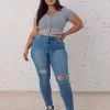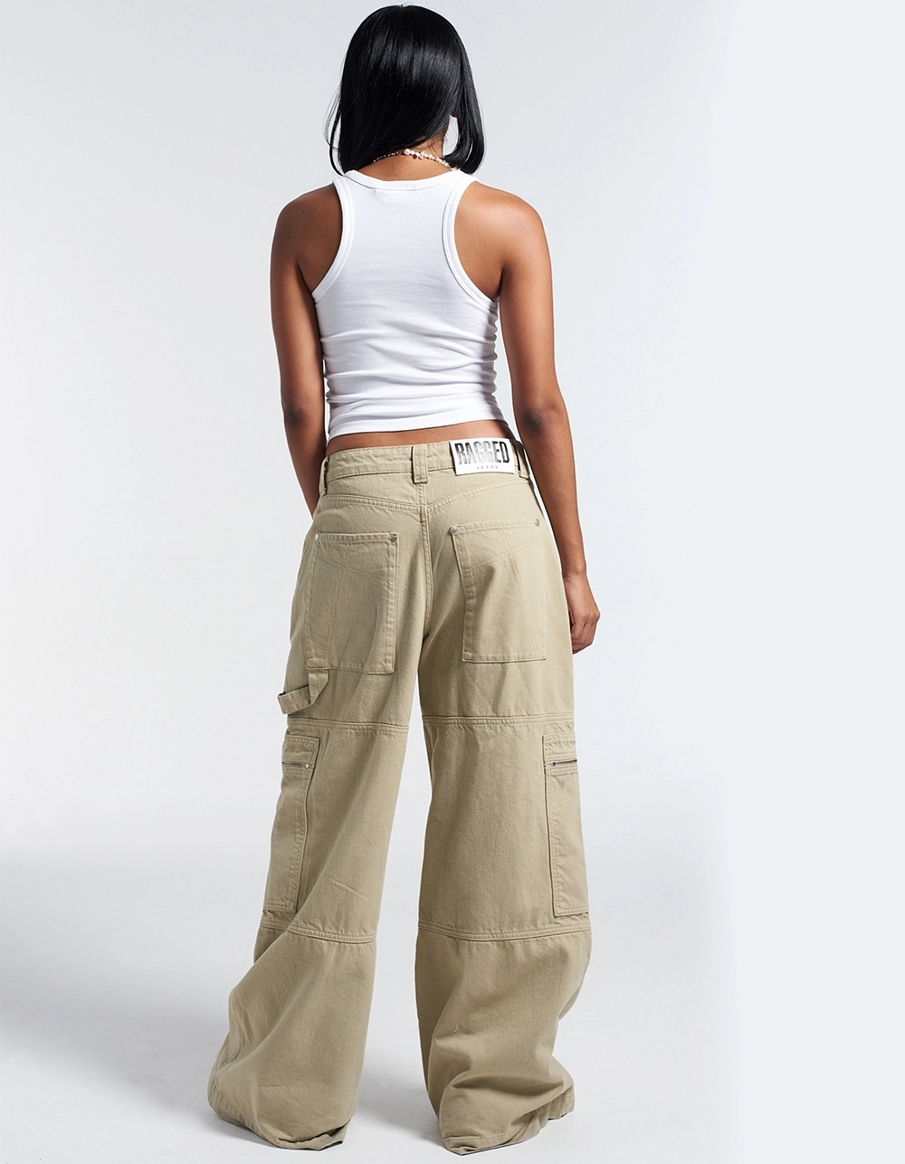 The Ragged Priest Zip Sweeper Jeans. The Ragged Priest signature Sweeper Jean fit in stone wash denim with combat style pockets with silver hardware zips with our classic “Ragged Jeans” vegan belt loop back tab. No stretch rigid denim. Mid rise. Ultra wide leg. Slouchy fit. Designed to sweep the floor. Signature cross stitch on back pockets. 100% Organic Cotton. Machine wash. Imported.