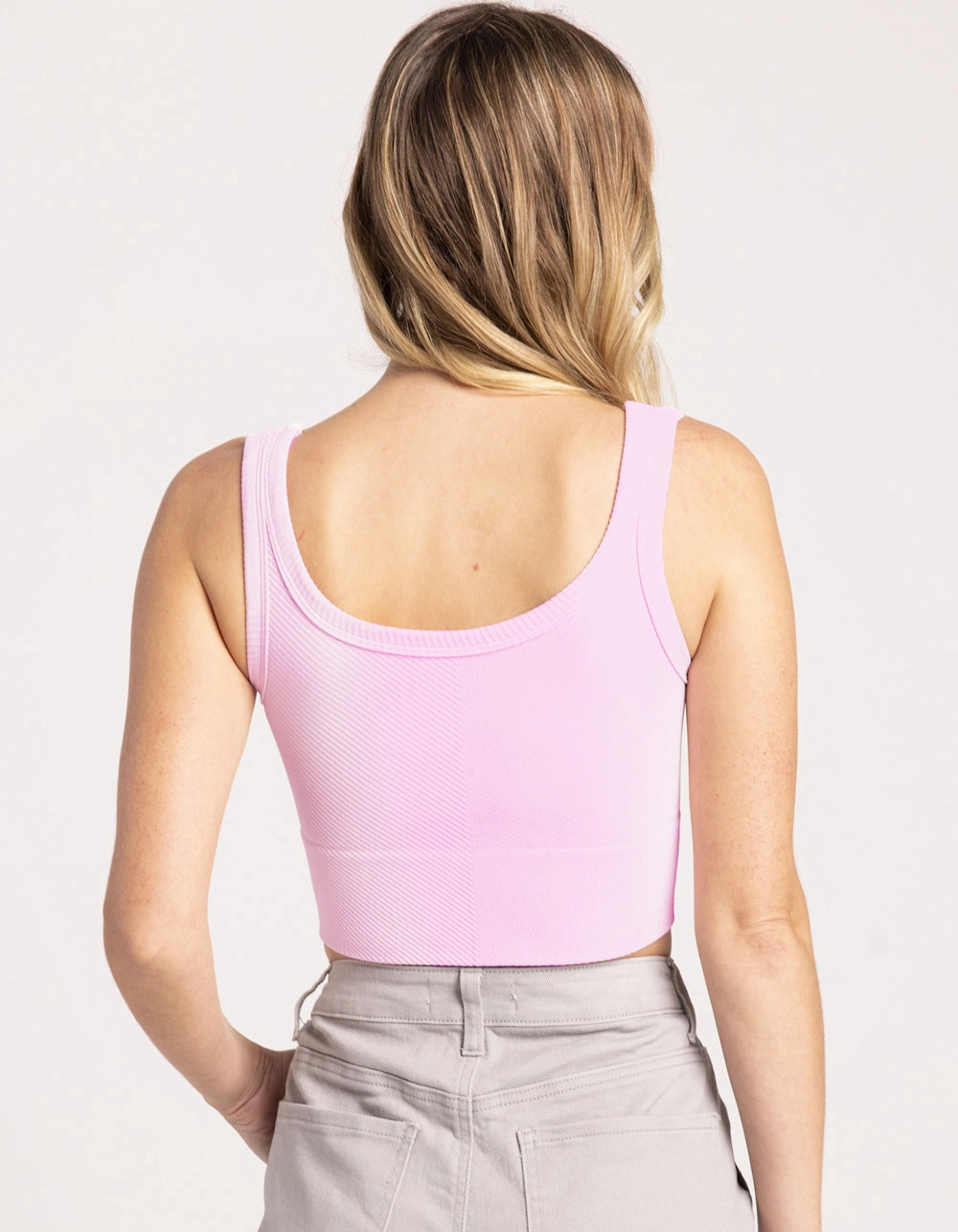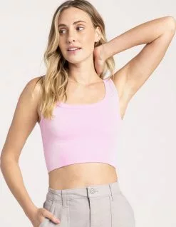 Tillys Chevron Ribbed Crop Bralette. Chevron ribbed construction. Wide elastic hem. Fixed straps. Crop fit. 92% Nylon 8% Spandex. Hand wash. Made in U.S.A.