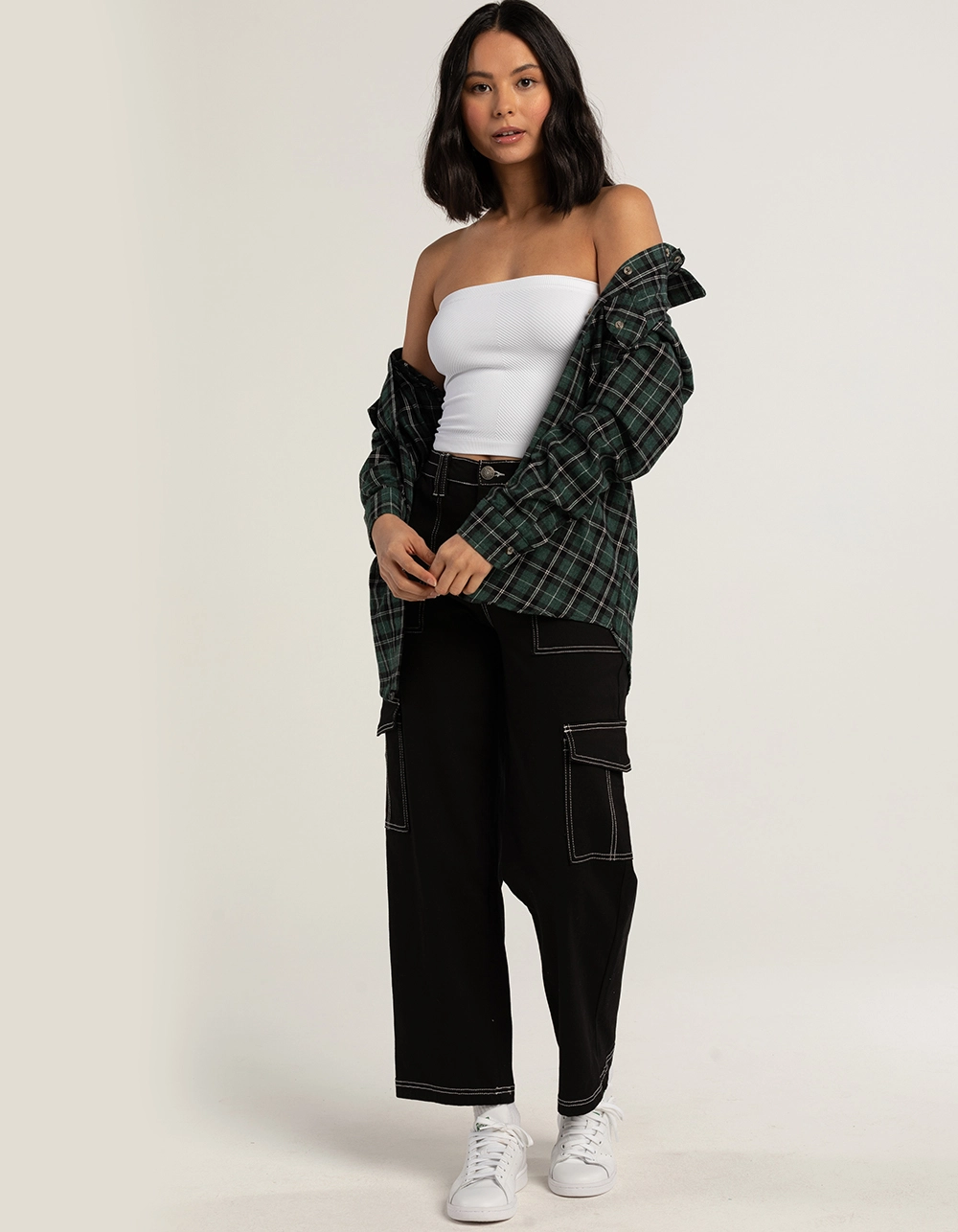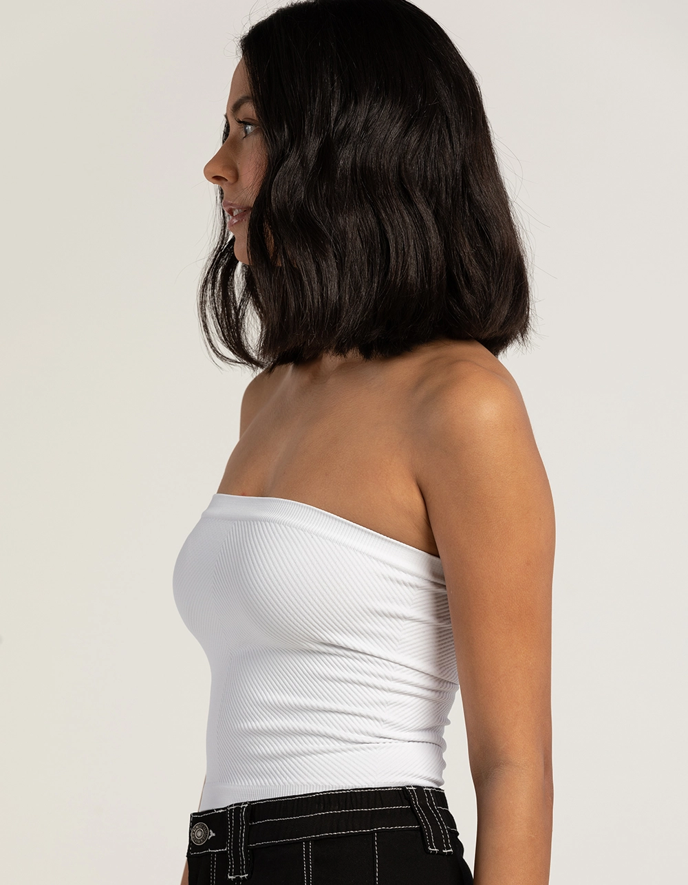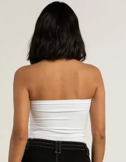 Tilly’s Chevron Tube Top. Chevron ribbed construction. Sleeveless. Crop fit. 92% Nylon, 8% Spandex. Hand wash. Made in U.S.A.
