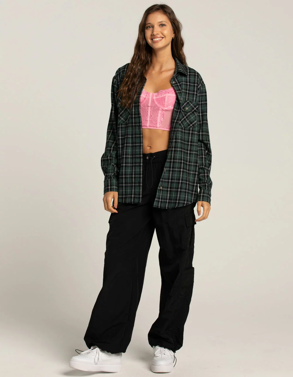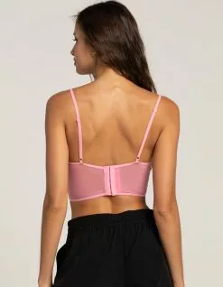 Tillys Lace Corset Top. Corset style front featuring faux boning. Delicate lace and mesh fabrication. Underwire adds extra support. Lace trim neckline. Adjustable spaghetti straps. Hook and eye closures at back. Cropped fit. 90% Nylon, 10% Spandex. Machine wash. Imported.