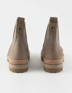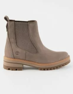 Timberland Courmayeur Valley Chelsea Boots. Pull-on styling with dual stretch panels. Wool and cotton herringbone linings. Features a cushioned and odor-blocking OrthoLite® footbed for all-day comfort. EVA midsoles. Rubber lug outsole. Imported.