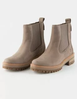 Timberland Courmayeur Valley Chelsea Boots. Pull-on styling with dual stretch panels. Wool and cotton herringbone linings. Features a cushioned and odor-blocking OrthoLite® footbed for all-day comfort. EVA midsoles. Rubber lug outsole. Imported.
