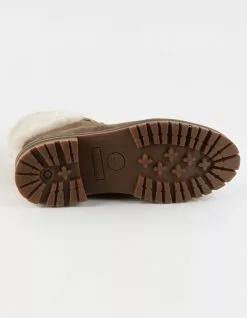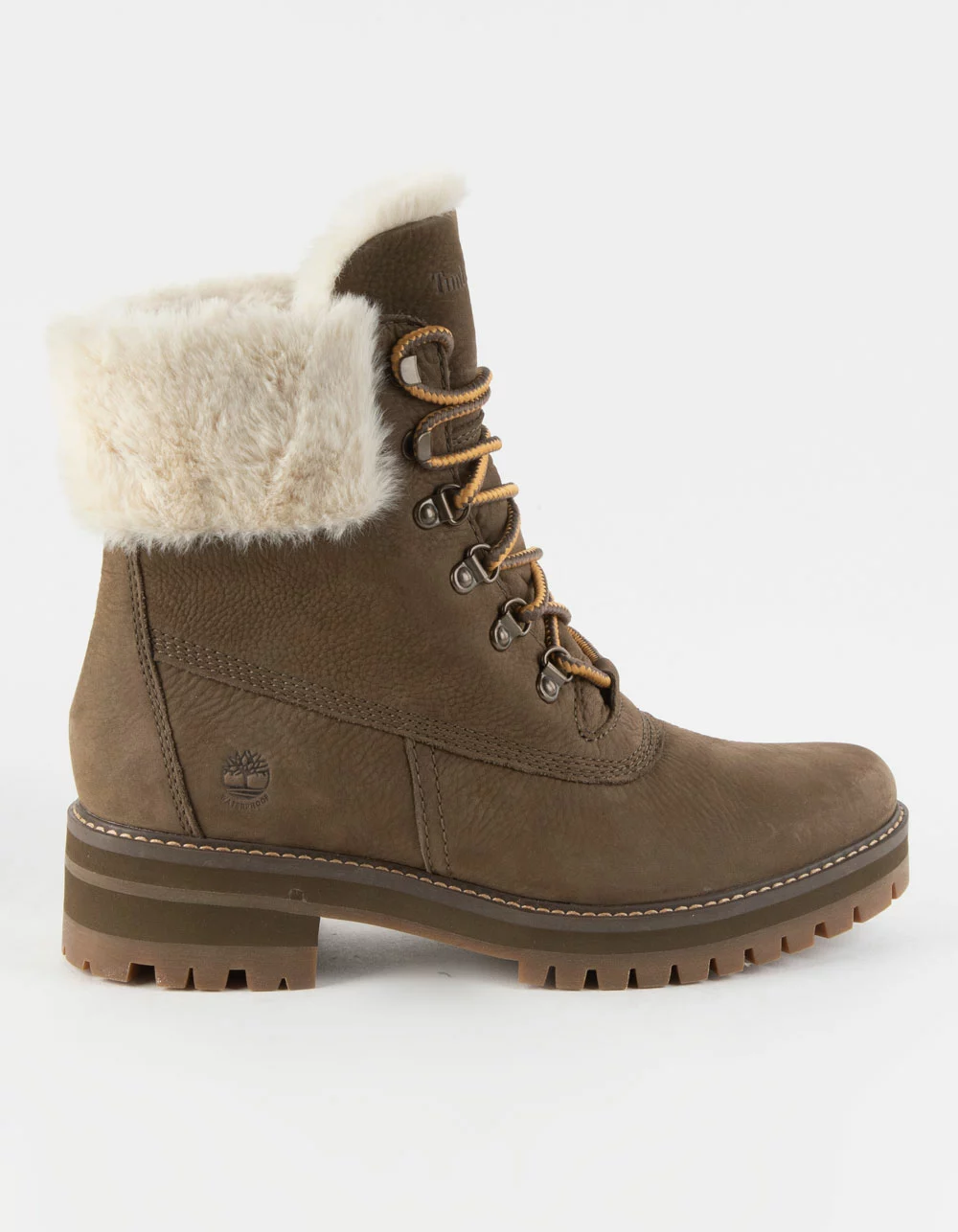 Timberland Courmayeur Valley Waterproof Boots. Designed with quality and comfort in mind, these women’s waterproof boots are trimmed with faux fur and feature a two-part flex insole, cushioned midsole, and lightweight OrthoLite® footbed. Better Leather from a tannery rated silver for its water, energy, and waste management practices. Faux fur collar. ReBOTLâ„¢ fabric lining containing at least 50% recycled plastic. Lightweight OrthoLite® footbed. Two-part flex insole. Midsole of EVA-blend foam for high-rebound cushioning. Waterproof membrane. Rubber lug outsole. Imported.