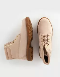 Timberland Linden Woods 6” Waterproof Boots. An update on a classic, these waterproof ankle boots feature 200 grams of PrimaLoft® insulation, seam-sealed construction, and eco-conscious materials. Better Leather from a tannery rated silver for its water, energy, and waste management practices. ReBOTL™ fabric lining containing at least 50% recycled plastic. Steel shank for arch support. Rubber lug outsole. Lightweight OrthoLite® footbed for all-day comfort. Shaft: 5.63 in./14.3cm. Heel: 1.13 in./2.9cm. Imported.
