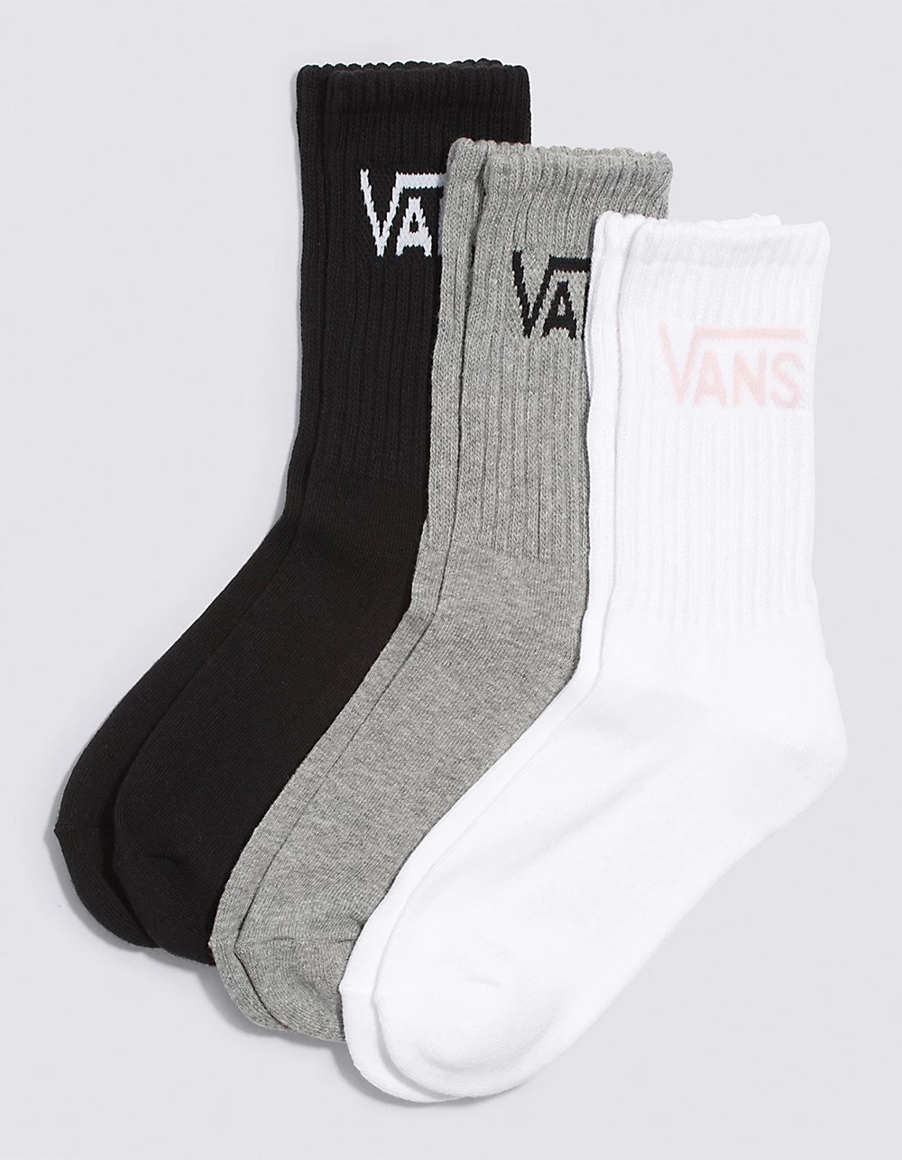 Vans Classic Crew Assorted Socks. 3 pack crew socks. Accommodates shoe sizes 6.5-10. 76% Cotton, 13% Nylon, 7% Polyester, 1% Elastane, 3% Other fiber. Machine wash. Imported.