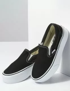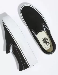 Vans Classic Slip-On Stackform Shoes. The Classic Slip-On Stackform refreshes our original slip-on silhouette with an even chunkier take on the platform aesthetic. Constructed with a 34 mm sidewall height, this platform shoe elevates a classic favorite while bringing a new “Off The Wall” style to your look. Along with sturdy canvas uppers, the Classic Slip-On Stackform is finished with traditional elastic side accents, supportive padded collars, and signature rubber waffle outsoles. Imported.