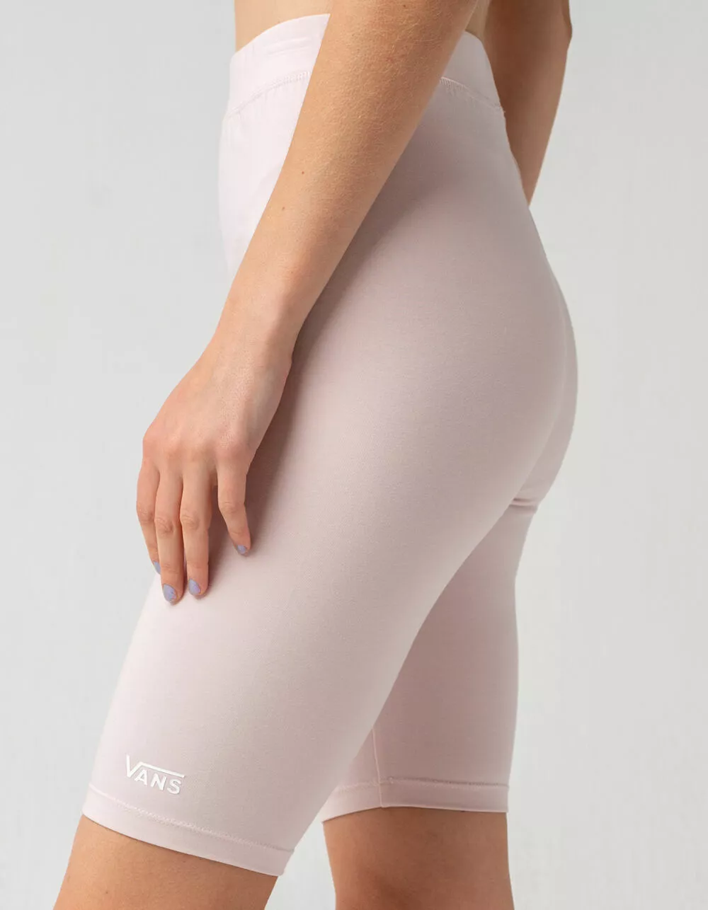 Vans Flying V Biker Shorts. Solid biker shorts. Vans logo screened at left front hem. Elastic banded waist. High rise. Fitted. Mid thigh length. Inseam: 9″. 93% cotton/7% spandex. Machine wash. Imported.