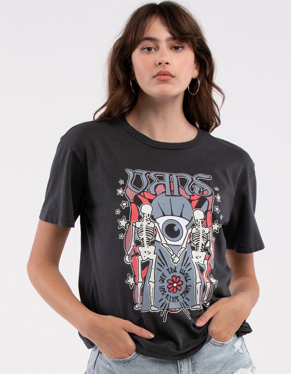 Vans Gem N Eye Tee. Graphic on center chest. Large graphic on back. Ribbed crew neckline. Short sleeves. Relaxed fit. 100% Cotton. Machine wash. Imported..