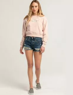 Vans Micro Ditsy Crop Boxy Crewneck Sweatshirt. Logo screened on center chest featuring floral embroidery. Ribbed crew neckline. Rib cuffed long sleeves and hem. Fleece lining. Boxy fit. Cropped. 60% Cotton, 40% Polyester. Machine wash. Imported.