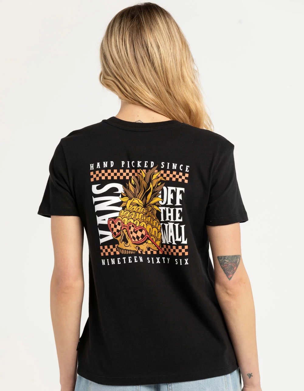 Vans Pine Head Tee. Graphic screened on left chest. Large graphic on back. Ribbed crew neckline. Short sleeve. 100% Cotton. Machine wash. Imported.