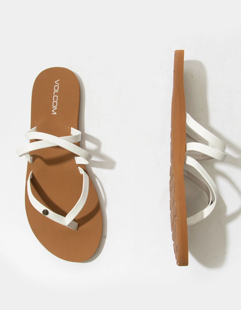 Volcom Easy Breezy II Sandals. Vegan leather foot straps with Volcom Stone metal logo emblem at front. Soft padded footbed with arch support and Volcom logo. Rubber outsole with traction. Imported.