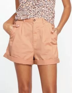Volcom Frochickie Trouser Shorts. The Frochickie short is back and better than ever. Now part of Volcom’s Eco-True collection, this versatile classic chino short is made partially with Repreve® recycled fibers, turning discarded plastic bottles into functional, comfortable, everyday style. Short with trouser pockets. Pleated front and elasticated back panel. Stone embroidery at back hip. Loose fit. 2.5″ inseam (rolled). 59% Cotton, 39% Polyester Repreve, 2% Elastane Twill. Machine wash. Imported.