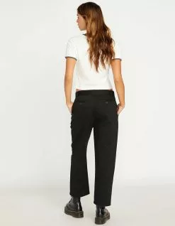 Volcom Lowstone Chino Pants. A chill spin on a classic style, the Lowstone pant features a relaxed fit, cropped cut, wide leg silhouette, and a center crease at front and back. Cropped chino pant. Large belt loops. Italian pockets, hidden pocket at waistband. Zipper fly with hook closure. Tonal Stone embroidery at wearer’s back left leg and right back waistband. 26″ inseam. 60% Cotton, 40% Polyester. Machine wash. Imported.