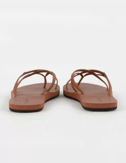 Volcom New School II Thong Sandals. The New School sandal is back and softer than ever with a thicker EVA footbed and arch support for True Comfort. This adorable strappy sandal is a true wardrobe staple that will go perfectly with your favorite sun dress. Recliner comfort foam footbed. Synthetic leather criss cross strap upper. Logo pin branding on upper. Synthetic leather footbed. Added molded arch support. Rubber sponge outsole. Imported.