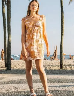 Volcom Only Good Daze Dress. With style like this, you’ll have Only Good Daze to look forward to. Express your free spirit and enjoy comfortable, everyday wear all at the same time. Allover printed cap sleeved cami with gathering detail at front chest, empire waist and elasticated back chest. Metal badge at front hem. 100% Viscose. Machine wash. Imported.