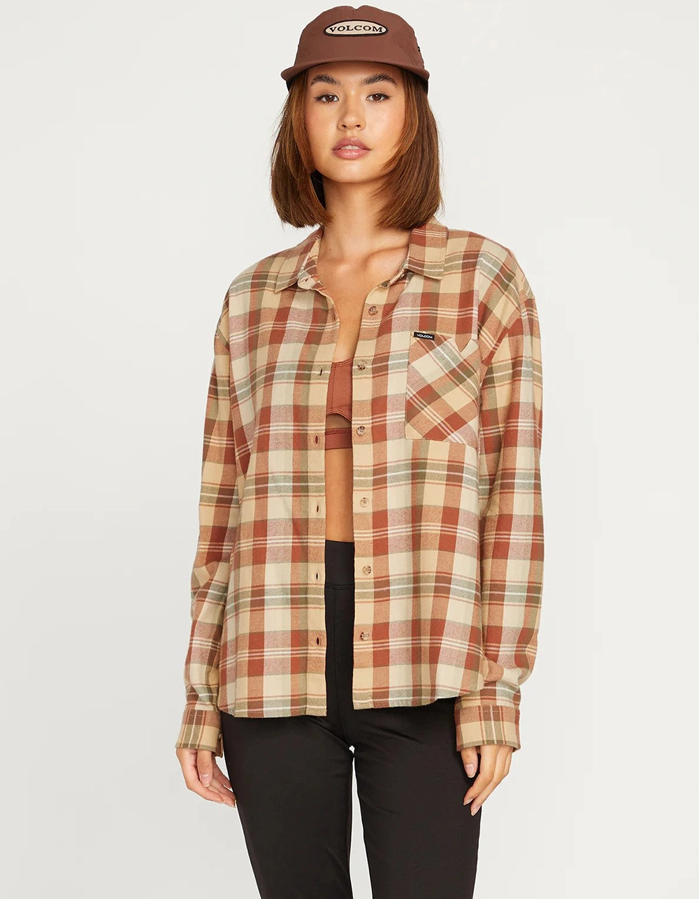 Volcom Plaid to Meet U Flannel. When the cool air rolls in, is there anything better than wrapping yourself up in a super soft, cozy cotton flannel? Featuring that comfy loose fit that you love, the Plaid to Meet U will be an instant favorite you’ll reach for over and over again. Loose fit. 100% Cotton Yarn Dye Flannel. long sleeve button down shirt. Slight drop shoulder and back yoke detail. Front patch pocket with “V” notch cut out at pocket hem. Adjustable sleeve cuffs. Sew down label at front patch pocket and Stone embroidery at back armhole. 100% Cotton. Imported.