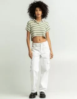Volcom Popzone Polo Shirt. The Popztone short sleeve puts a modern twist on a classic polo style. With a boxy fit and dropped shoulder, you’ll make a statement in this.Boxy Fit. Polo With Rib Collar, Step Hem and Dropped Shoulder. Partial Button Placket With Scalloped Trim Inset. Stone Embroidery at Back Shoulder. 95% Viscose / 5% Elastane. Machine wash. Imported.