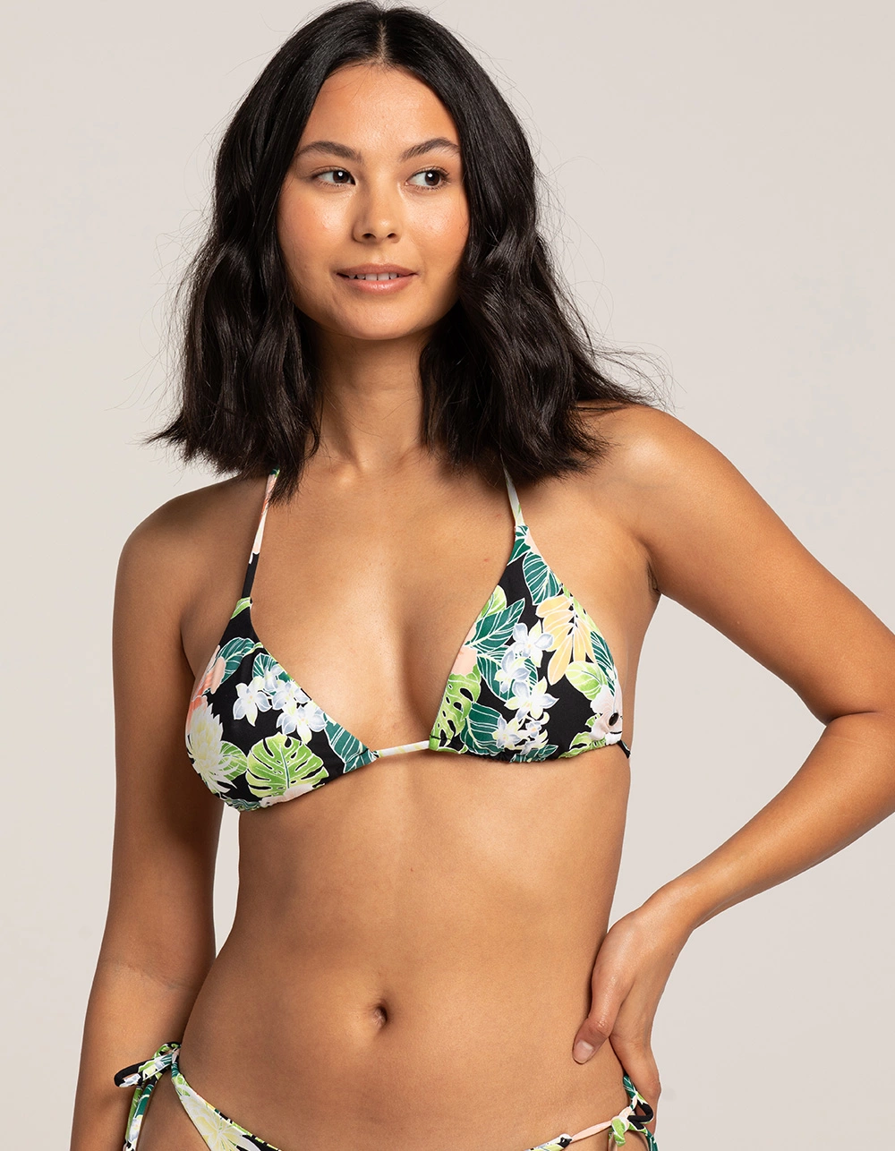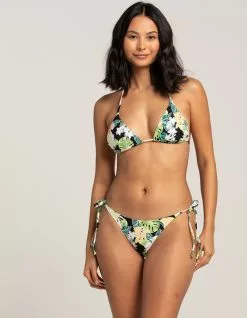 Volcom Shady Beach Tri Bikini Top. Made responsibly because we love the planet, this bikini top is made with Greenlon® recycled nylon so you can look great in and feel good about your swimwear. Slide Triangle top with functional neck and underbust ties. Volcom logo metal badge at wearer’s front left hem. 87% Greenlon Recycled Nylon, 13% Elastane Soft Jersey. Hand wash. Imported.
