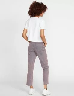 Volcom Stoned Straight Jeans. Belt loop waist. Button closure paired with zipper fly. Traditional 5 pocket design. Straight fit. High rise. Raw hem. Pigment wash. Approx. inseam: 27″. 99% Cotton 1% Elastane. Machine wash. Imported.