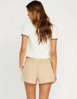 Volcom Strutin Stone Shorts. You can’t help but Strut in this short. Made from super soft and flowy drapey twill cotton fabric, you’ll enjoy side entry pockets, raw edge leg openings, and an elastic waist for a comfortable, flexible fit. Pull on elasticated waist short with contrast drawcord. Stone metal badge at hem. 10.5″ front rise. 2.5″ inseam. 100% Cotton. Machine wash. Imported.