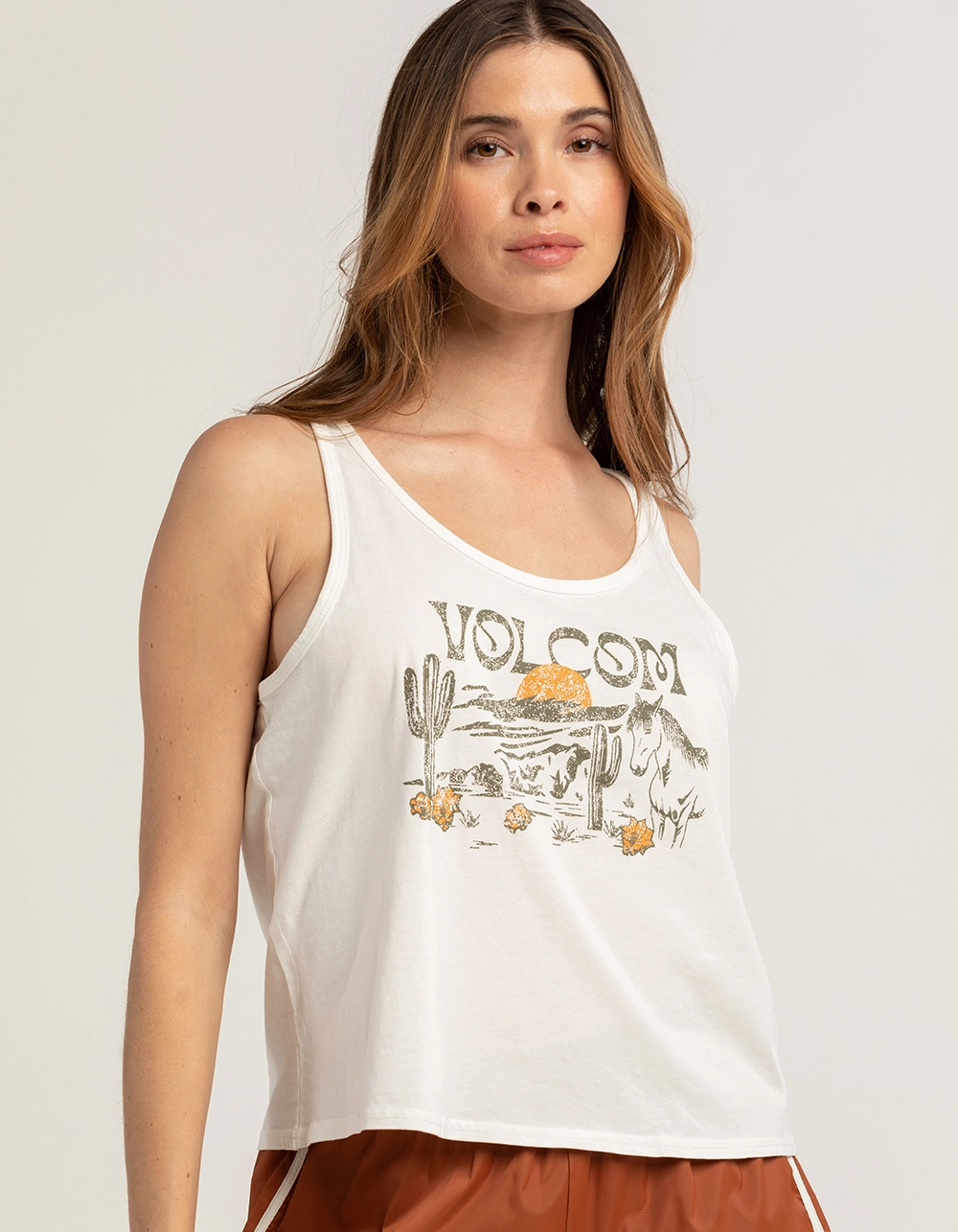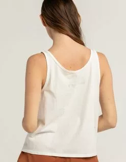 Volcom To The Bank Tank Top. Graphic screened on front. Scoop neckline. Fixed shoulder straps. Boxy fit. 100% Organic Cotton. Machine wash. Imported.