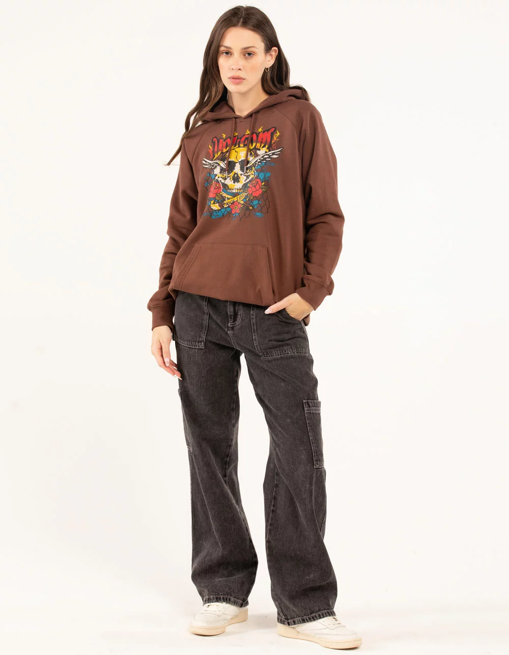 Volcom Truly Stoked Oversized Hoodie. Graphic screened across chest. Fleece lining. Drawstring hood. Front pocket pouch. Cuffed long sleeves and hem. 60% Cotton 40% Polyester. Machine wash. Imported.
