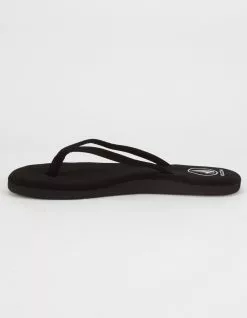 Volcom Vibes flip flops. Faux suede thin strap upper. Memory foam faux suede footbed. Imported.