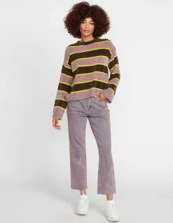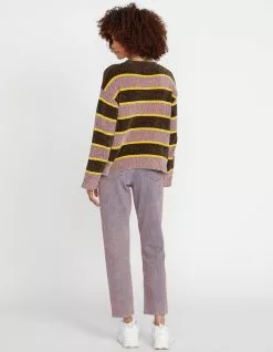 Volcom Bubble Tea Sweater. Silky smooth and velvety, the Bubble Tea striped sweater is made from luxurious chenille knitted fabric that you’ll instantly fall in love with. You’ll add a big dose of color and comfort to your wardrobe with this. Boxy fit sweater with crew neck and slightly flared long sleeve. HPS 21″. 100% Polyester Yarn Dye Chenille. Metal badge at front rib. Imported.