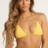 VYB Eye Can Rib Triangle Bikini Top. Ribbed triangle bikini top. Ties at the neck and back. 87% Nylon, 13% Spandex. Lining: 88% Polyester, 12% Elastane. Hand wash. Made in USA.