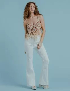 West Of Melrose Patchwork Flare Jeans. Zipper fly with button closure. Belt loop waist. Traditional five pocket styling. Patchwork design. Flare leg. Approx. inseam: 32.5”. 99% Cotton, 1% Spandex. Machine wash. Imported.