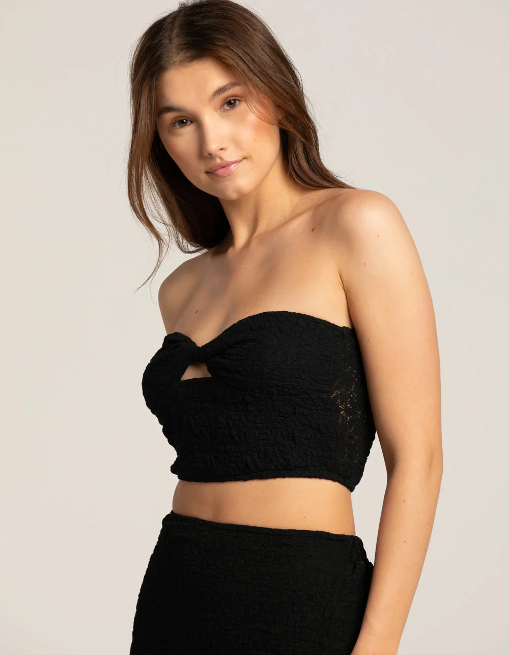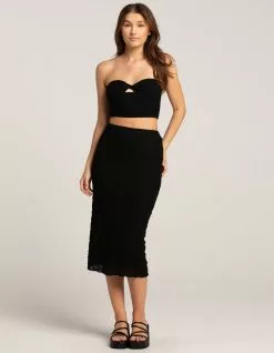 West Of Melrose Textured Knot Tube Top. Looking for a top that’s both playful and flirty? Check out the Textured Knot Tube Top! With its unique crinkle texture and fun knot detail, this top is the perfect addition to any summer wardrobe. Sweetheart neckline. Sleeveless. Cropped fit. Smocked back. Self: 60% Cotton, 30% Nylon, 10% Spandex. Lining: 100% Polyester. Machine wash. Imported.