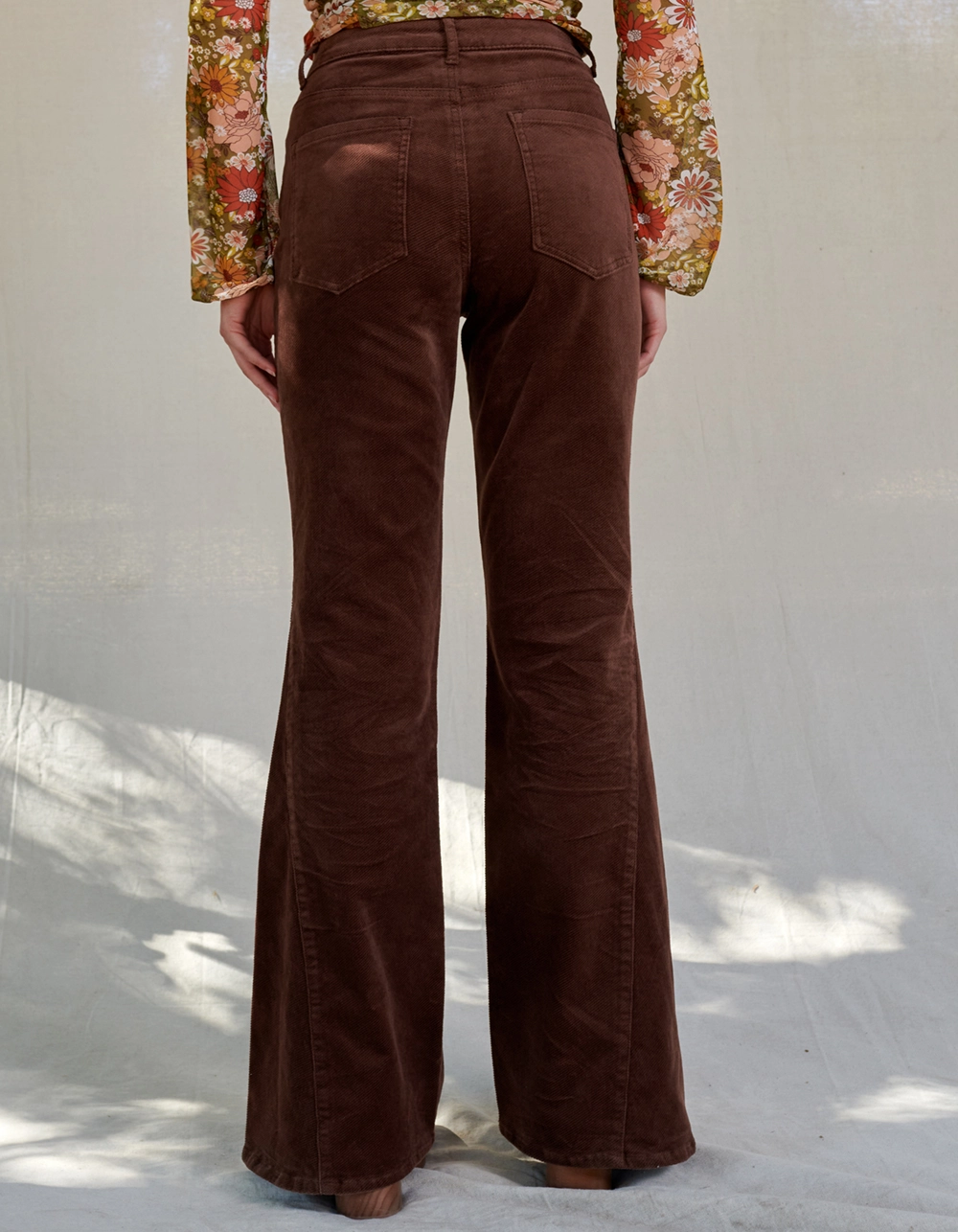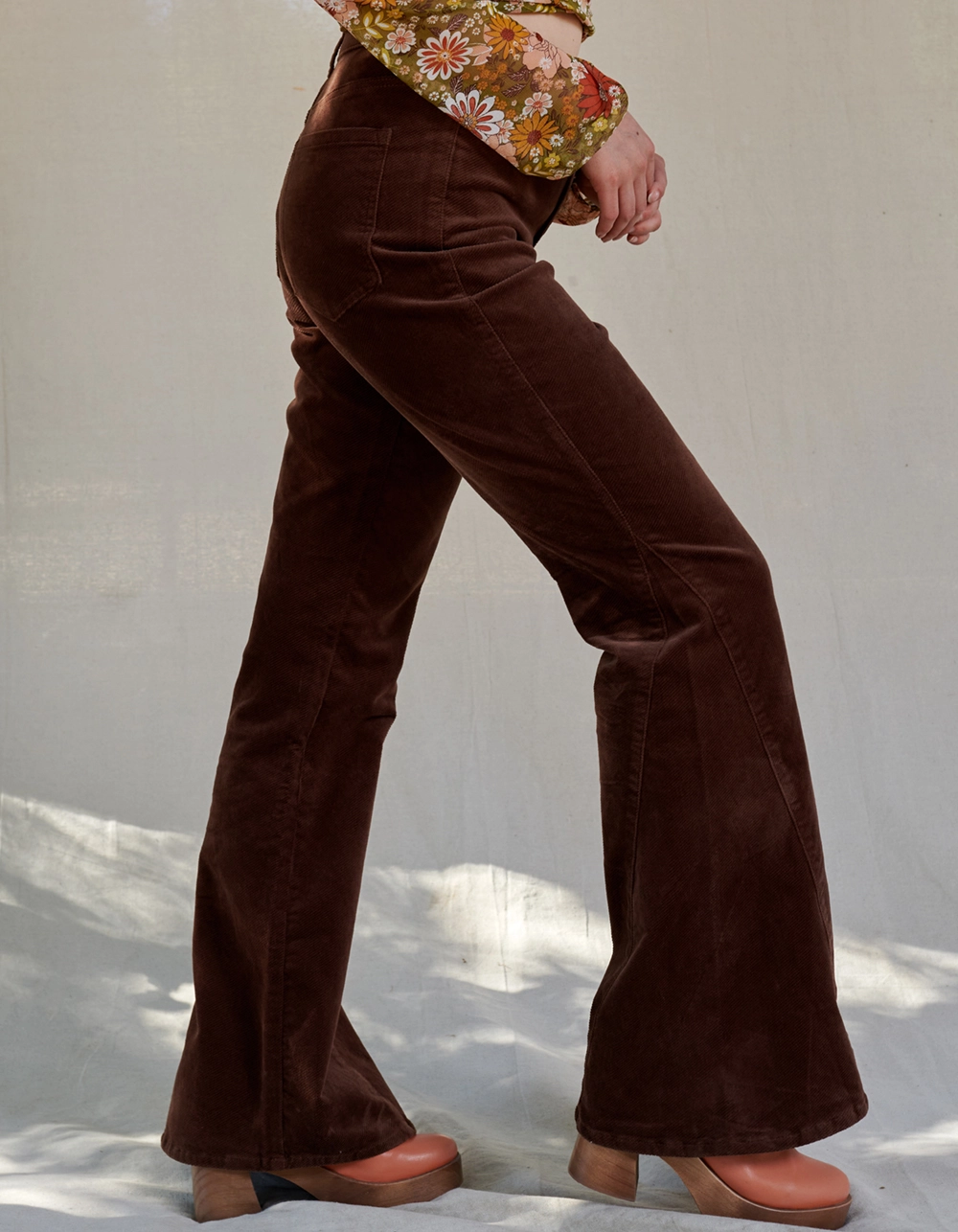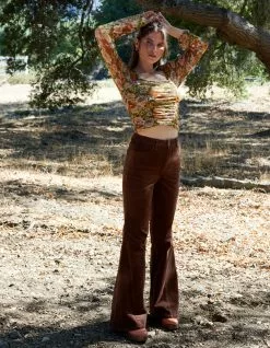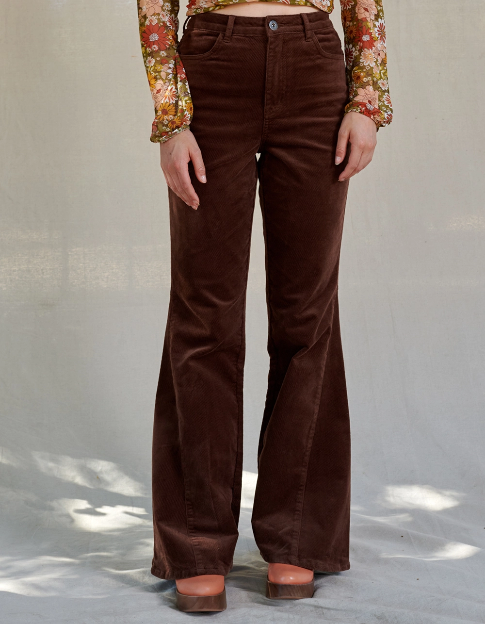West Of Melrose Corduroy Flare Pants. Belt loop waist. Button closure paired with zipper fly. Curved hand pockets. Back patch pockets. Flared hem. Approx. inseam: 32.5″. 99% Cotton 1% spandex. Machine wash. Imported.