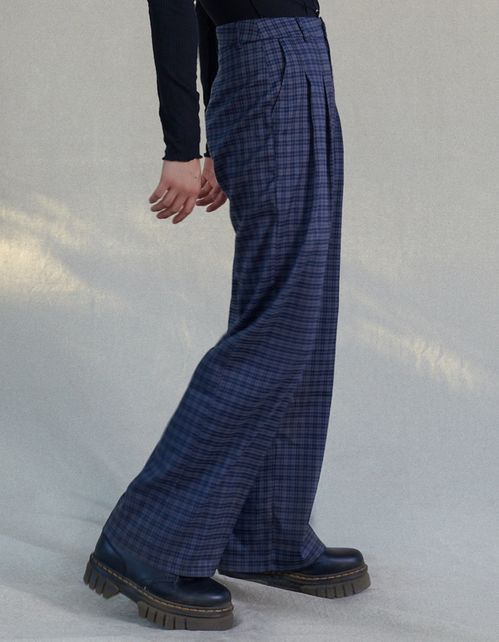 West Of Melrose Plaid Seamed Wide Leg Pants. Allover plaid pattern. Wide leg fit. Belt loop waist. Button closure paired with zipper fly. Side seam pockets. Pleats on front and back. Approx. inseam: 29.5″. 98% Polyester 2% spandex. Machine wash. Imported.