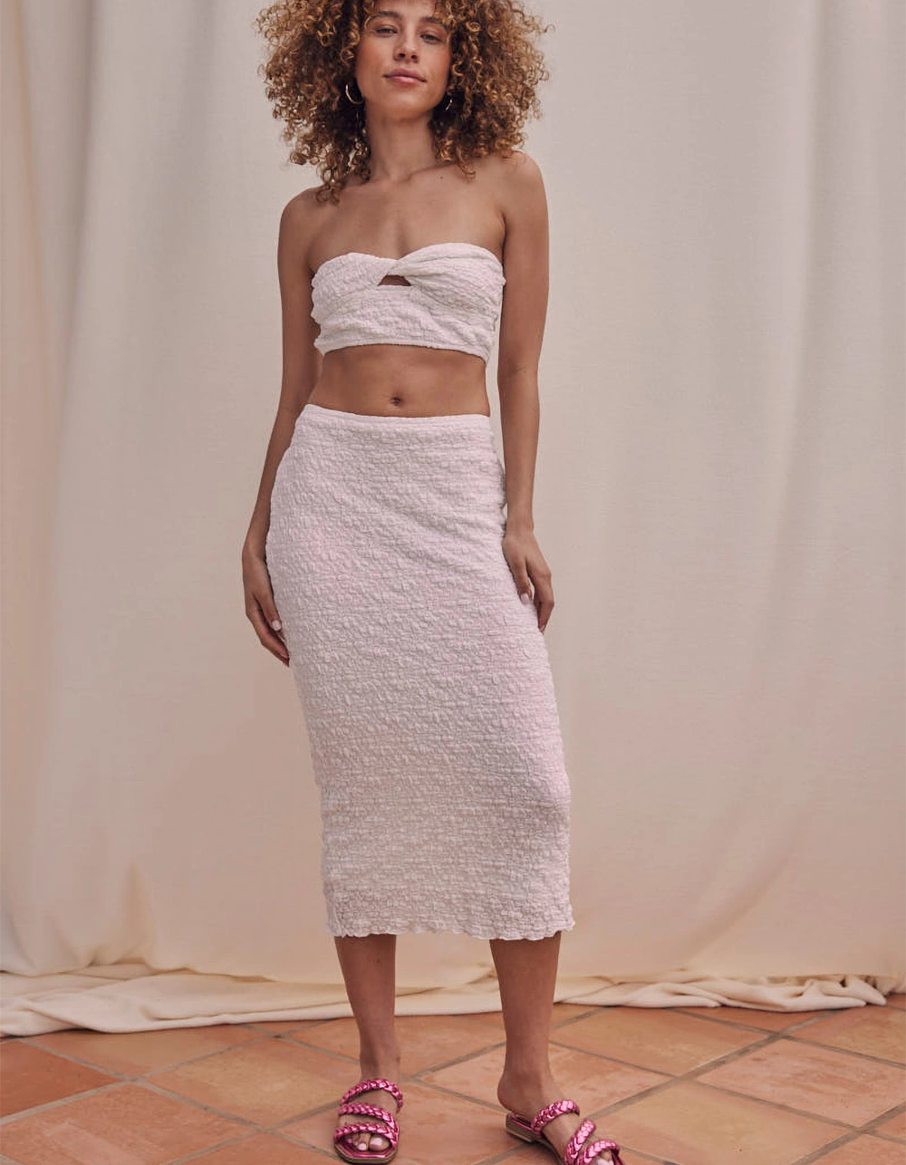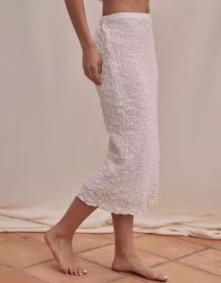 West Of Melrose Textured Midi Skirt. The crinkle texture adds a bit of dimension and interest to the classic black fabric, while the midi length provides just the right amount of coverage. And with its comfortable elastic waistband, this skirt is as easy to wear as it is stylish. Lettuce edge hem. Built-in lining. Approx. length: 32”. Self: 60% Cotton, 30% Nylon, 10% Spandex. Lining: 100% Polyester. Machine wash. Imported.