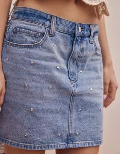 WEST OF MELROSE Womens Rhinestone Denim Skirt
